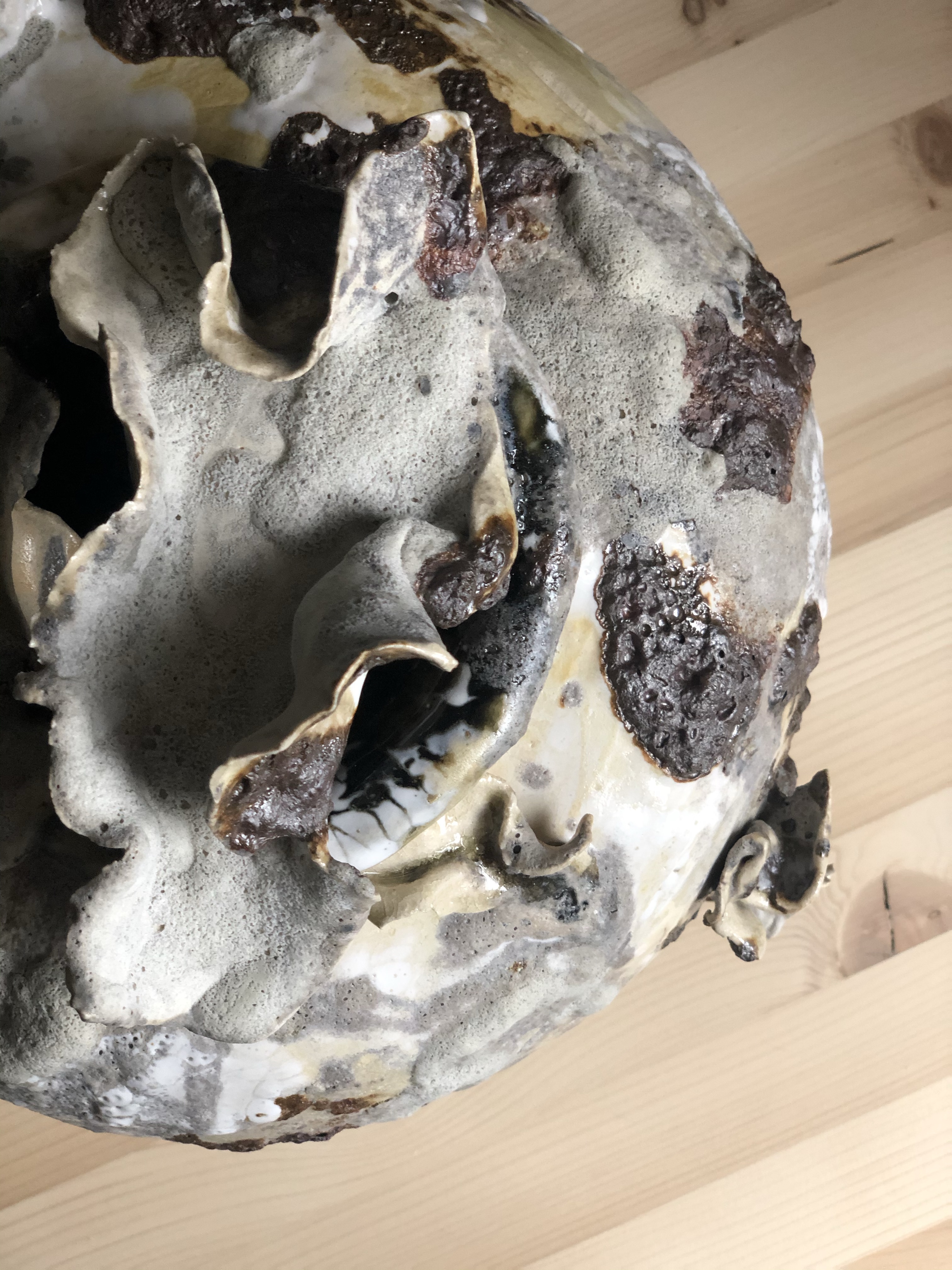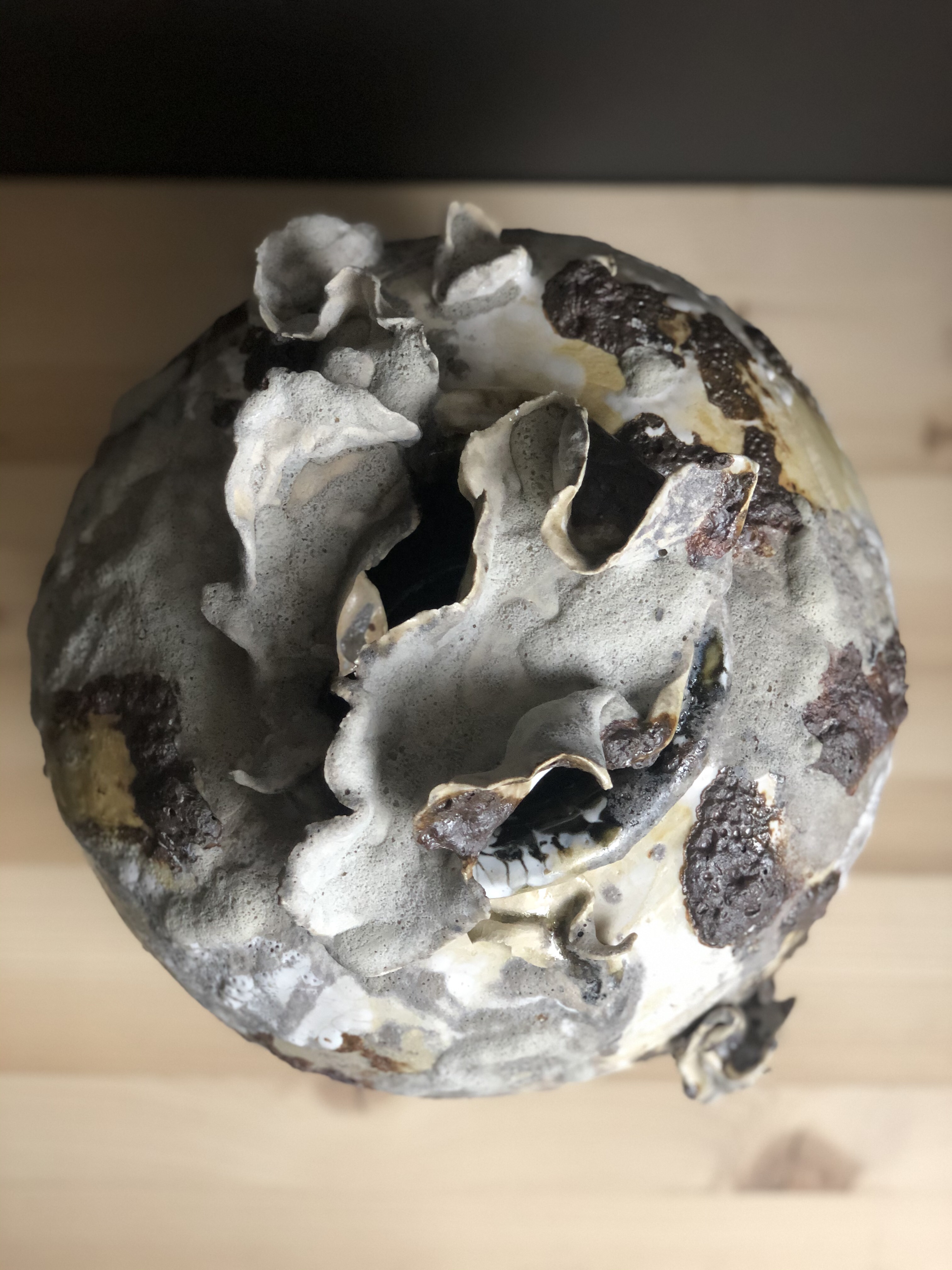 Through the encouragement of the Clay Club and funding from SOFASA I am able to attend NCECA in Pittsburg. My mind is further expanded with the potential for clay. That summer I am given an Undergraduate Research Award and spend my summer mentored by Grace Nickel. Part of this award includes a studio all to myself and access to the entire clay barn. I develop my material and ideas about chaos and produce a work that I consider my first actual work of art.