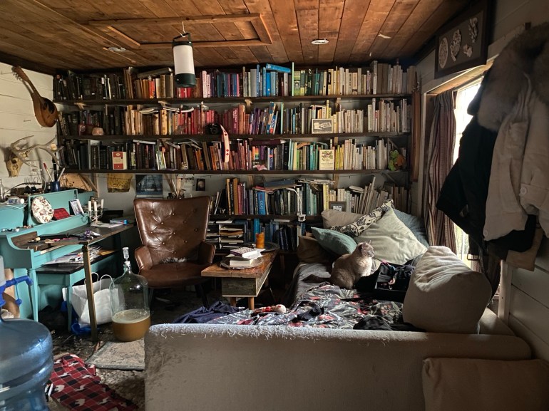 What I don’t know is how to feel during the chaos. I can survive storms just fine. But I am numb. I am dissociated from the pain of looking possibly for the last time at my little cabin–everything I have worked to build and make with my blood, sweat and tears over the last three years, and feel the sadness of it possibly burning to the ground. These grief states feel like something that has been trained out of me. If you move so many times, after all, you stop putting down roots and attaching to places.