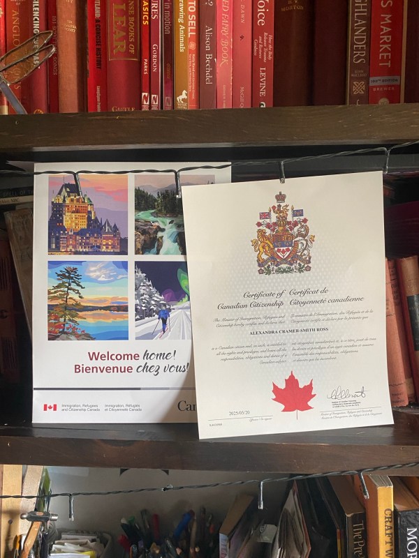 The second thing that happened was that I became a Canadian Citizen. While I have lived here my whole adult life, my status here has always been somewhat precarious. I was allowed to stay first on a student visa, then a work permit, finally permanent residency. All of these require tending, updating, documentation, and can be revoked if the requirements are not met or simply expire. There is always a chance I’d have to leave behind my life.