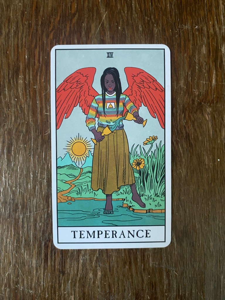 But a warning, the card after Temperance is The Devil. Our brains are not in love with changing things. This is why if you are trying to change a habit you might find success in the first few days, but inevitably the brain will start warning you of danger. To the brain new things are dangerous. “Better the devil you know” is the expression. Old habits, old modalities, old patterns of thinking, behaving and being in the world resurface when there is new forged material.