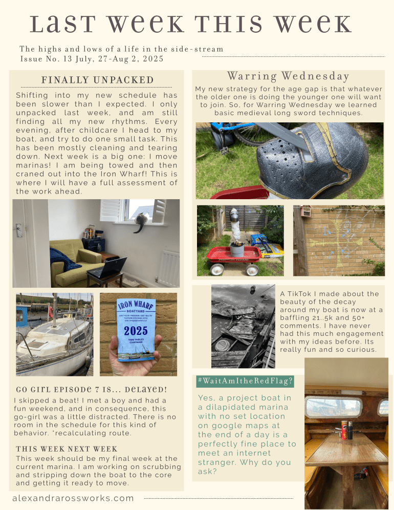 Last Week This Week 0 August 5, 2025 Written by alexandraross Happy Lughnasadh! Finding my rhythms, losing it, then on my way to finding it again! And again, and again. Share this: Click to share on Pinterest (Opens in new window) Pinterest Click to share on Facebook (Opens in new window) Facebook Click to share on X (Opens in new window) X Click to share on Tumblr (Opens in new window) Tumblr More Click to share on Pocket (Opens in new window) Pocket Click to share on Reddit (Opens in new window) Reddit Click to share on LinkedIn (Opens in new window) LinkedIn Click to print (Opens in new window) Print Click to email a link to a friend (Opens in new window) Email Like Loading... Related